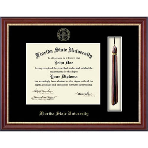 Display your graduation tassel or cords alongside your FSU diploma within black museum-quality matting and the school name and seal embossed in gold.