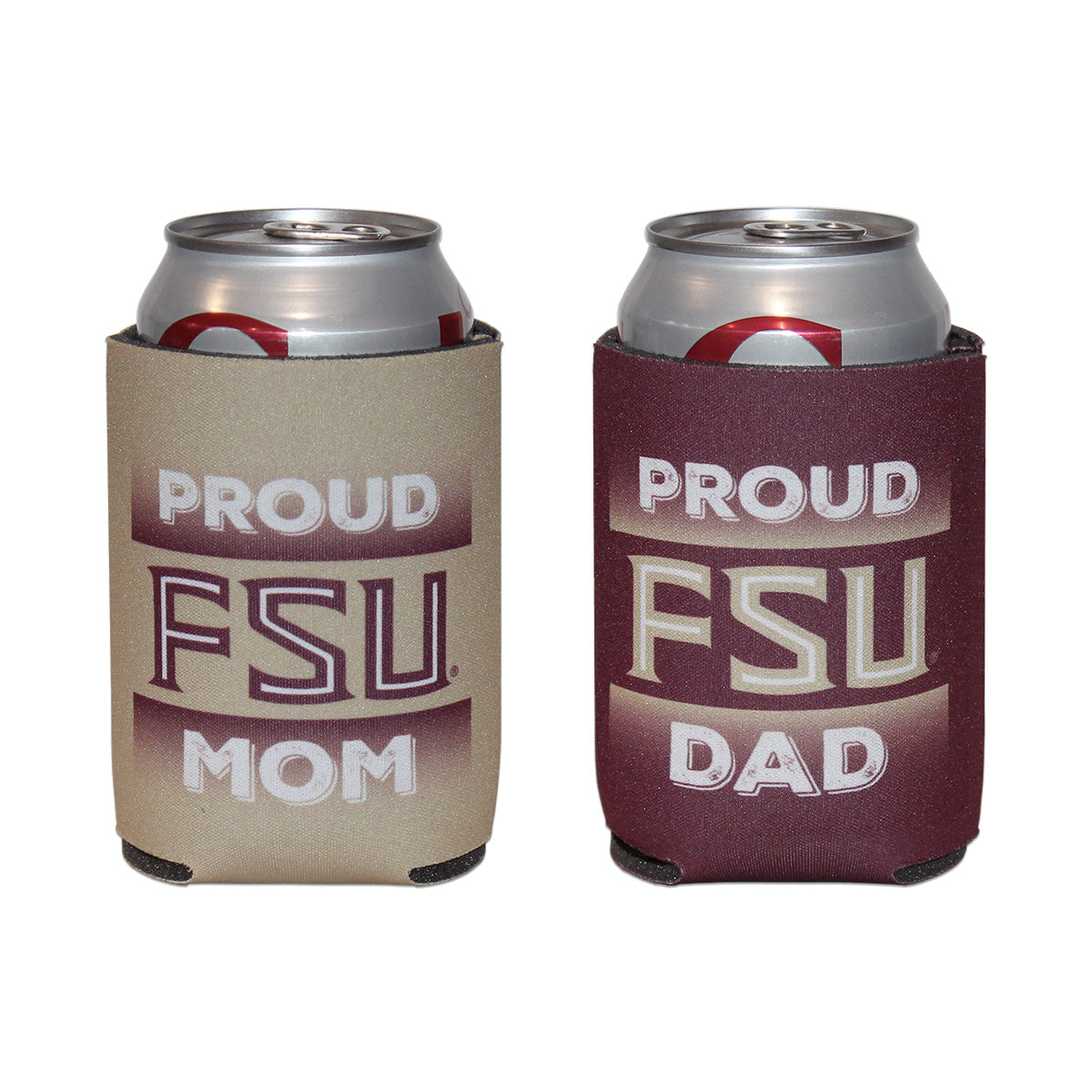 2pk Can Coozie with Proud FSU Mom/Proud FSU Dad Design
