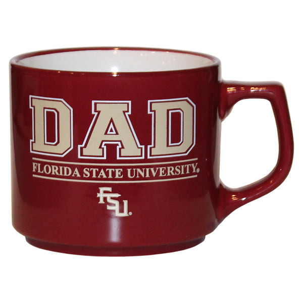 Material | 100% Ceramic. Color | Garnet. 16oz ceramic mug with Dad Florida State University Stacked FSU.