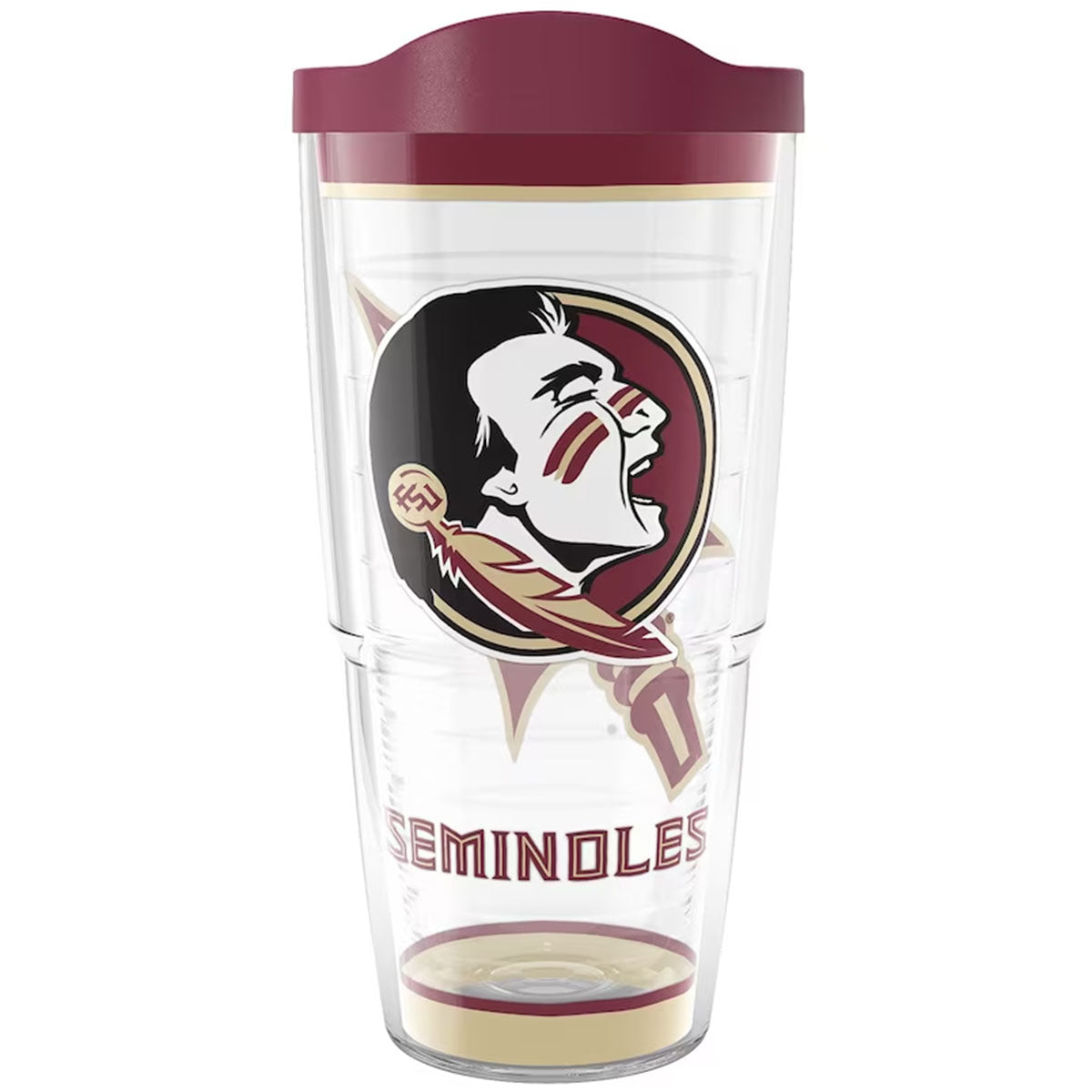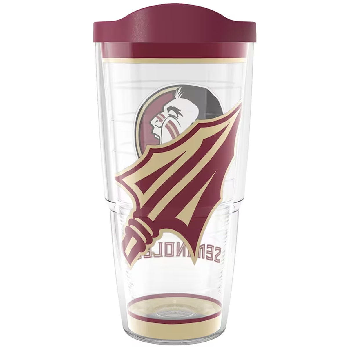 Material | 100% Plastic. Color | Clear. Tervis 24oz insulated tumbler with Seminole Head Seminoles Arrowhead design. BPA Free. Lifetime Guarantee. Dishwasher safe.