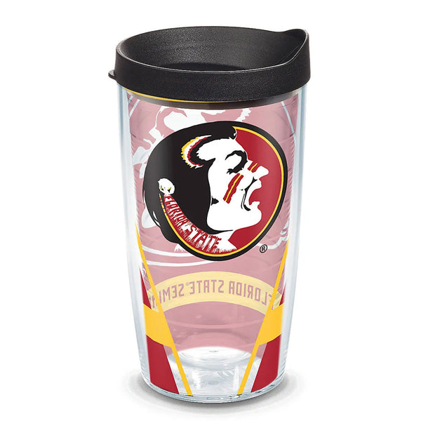 Material | 100% Plastic. Color | Clear. Tervis 16oz insulated tumbler with vault Seminole Head, Florida State University design. BPA Free. Lifetime Guarantee. Dishwasher safe.