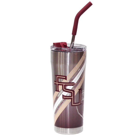 Gametime Sidekicks Seminole Logo/Stacked FSU Design 20oz Stainless Steel Insulated Straw Tumbler - Silver