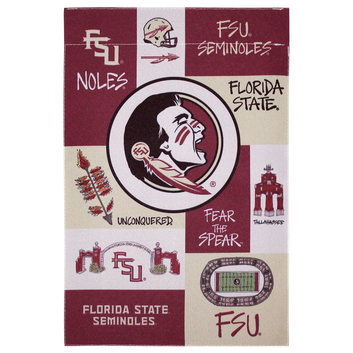 Double sided garden flag with Seminole Head and multi logo design.