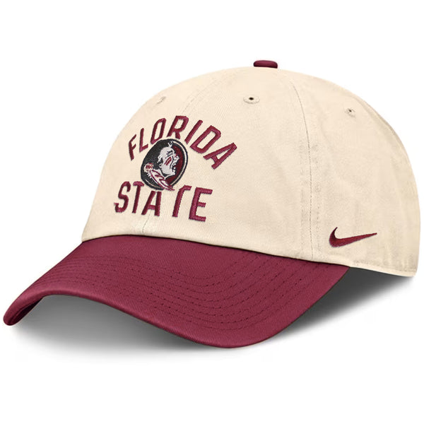 Nike Men's Florida State Seminole Logo Adjustable Club Primetime Hat - Natural/Garnet