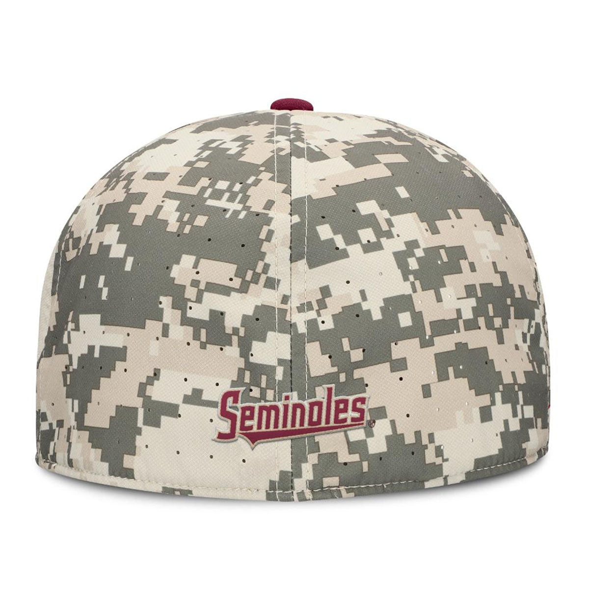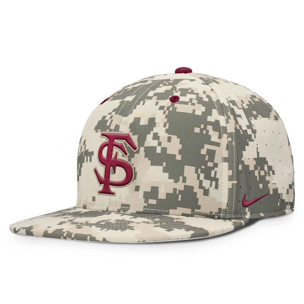 Material | 100% Polyester. Color | Camo. Nike men's dri-fit True Structured Aero bill fitted hat with 3D embroidered Interlock FS. Embroidered Seminoles on back.