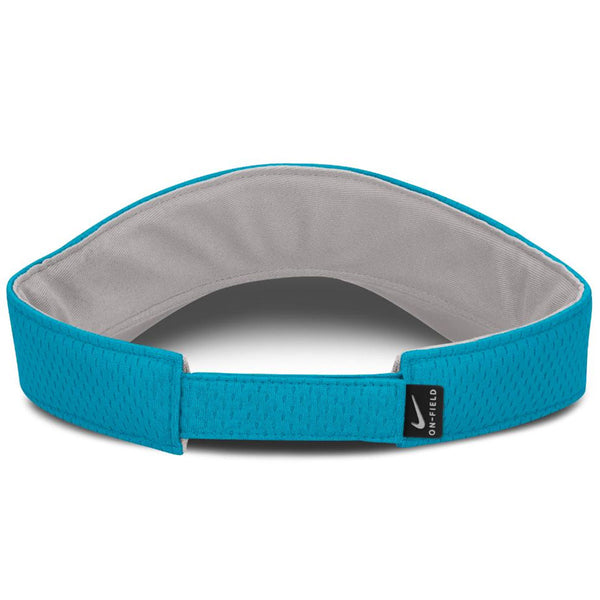 Material | 100% Polyester. Color | Turquoise. Nike adjustable softball ace visor with embroidered Spear. Embroidered Interlock FS on side.