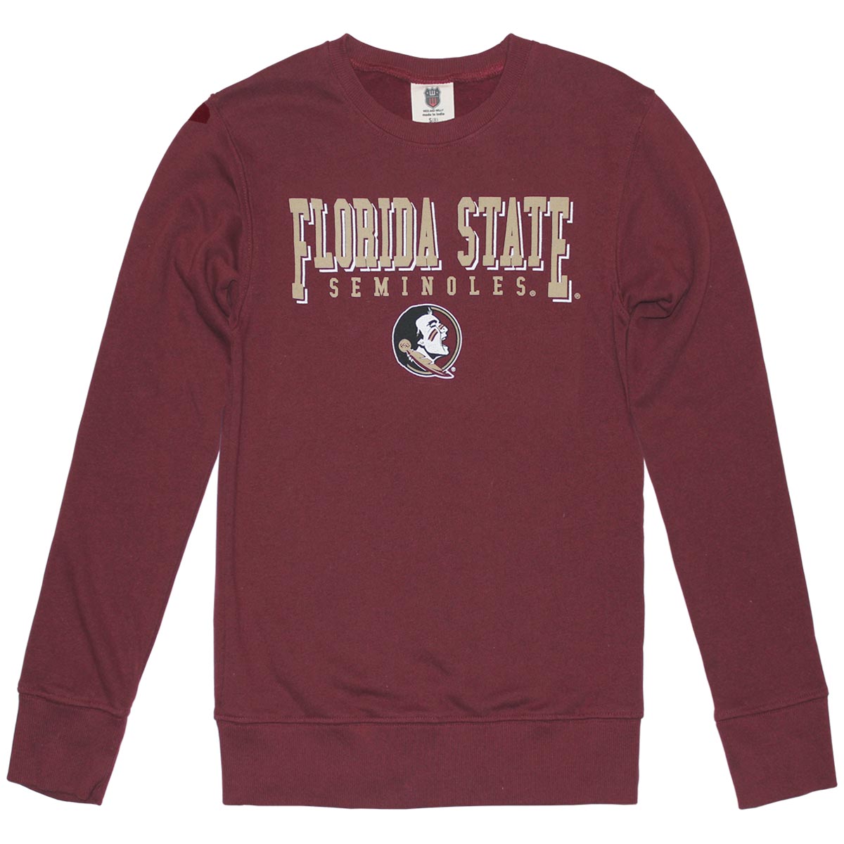 Material | 100% Cotton. Color | Garnet. Kid's crew fleece with screen printed Florida State Seminoles Seminole Head.