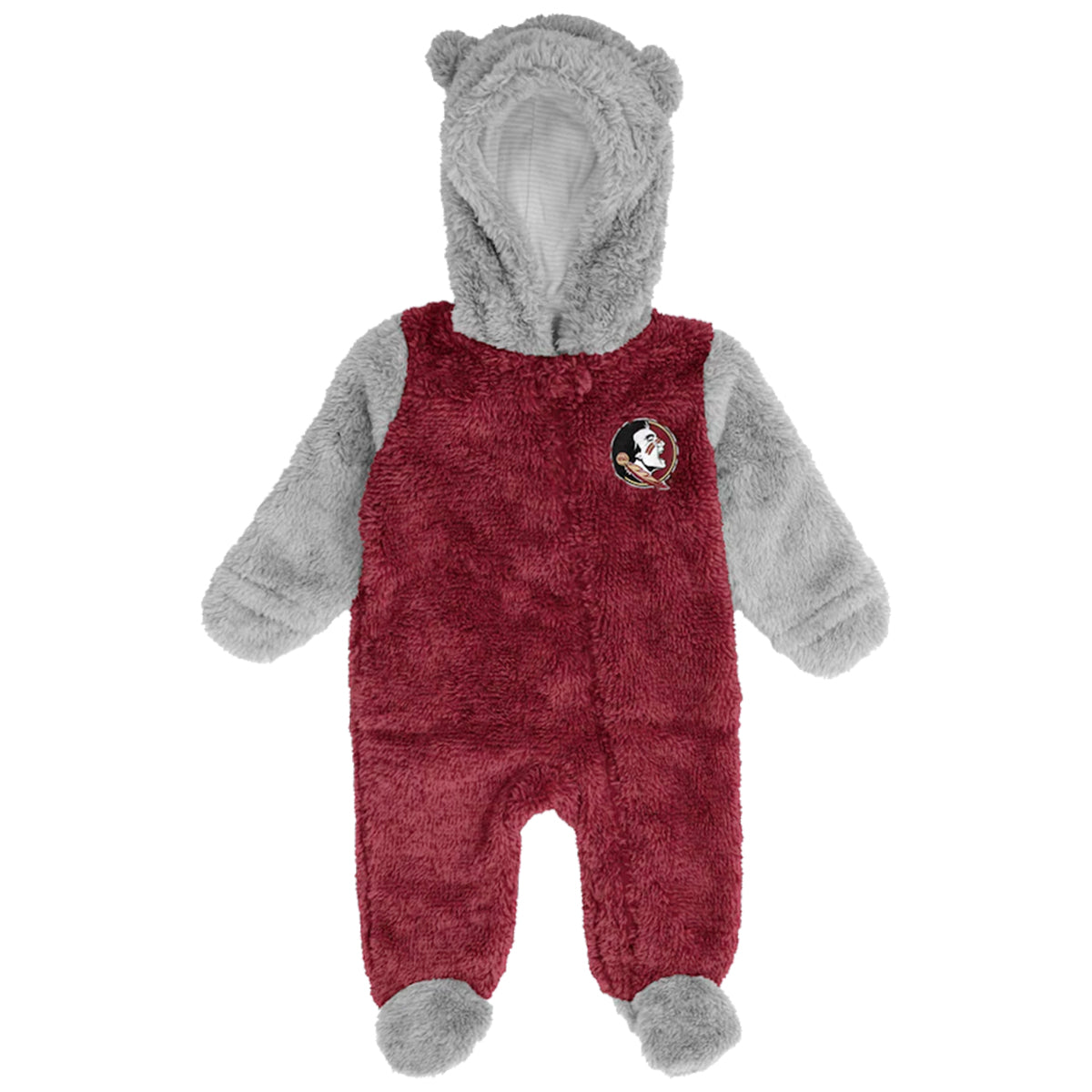 Outerstuff Infant Seminole Logo Fuzzy Teddy Sleeper - Garnet/Grey - GREY/GARNET / 0-3M is backordered and will ship as soon as it is back in stock.
