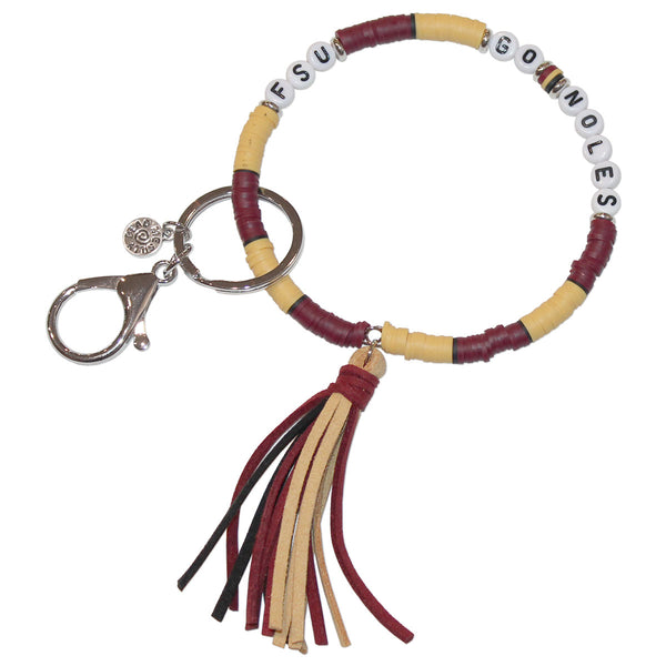 Beaded wristlet keychain with FSU Go Noles.