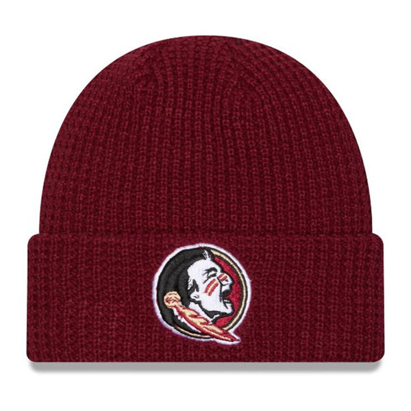New Era Youth Seminole Logo Cuffed Waffle Knit Hat - Garnet - Garnet is backordered and will ship as soon as it is back in stock.