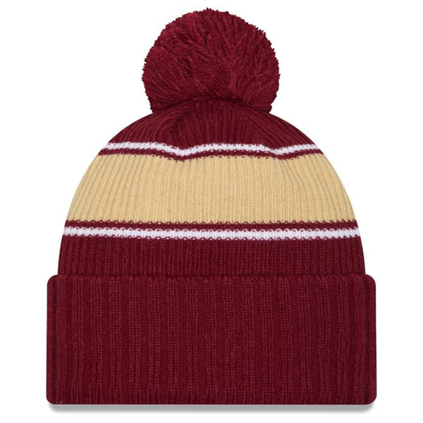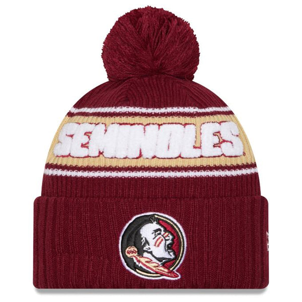 New Era Youth Seminoles/Seminole Logo Knit Pom Hat - Garnet/Gold - Garnet is backordered and will ship as soon as it is back in stock.
