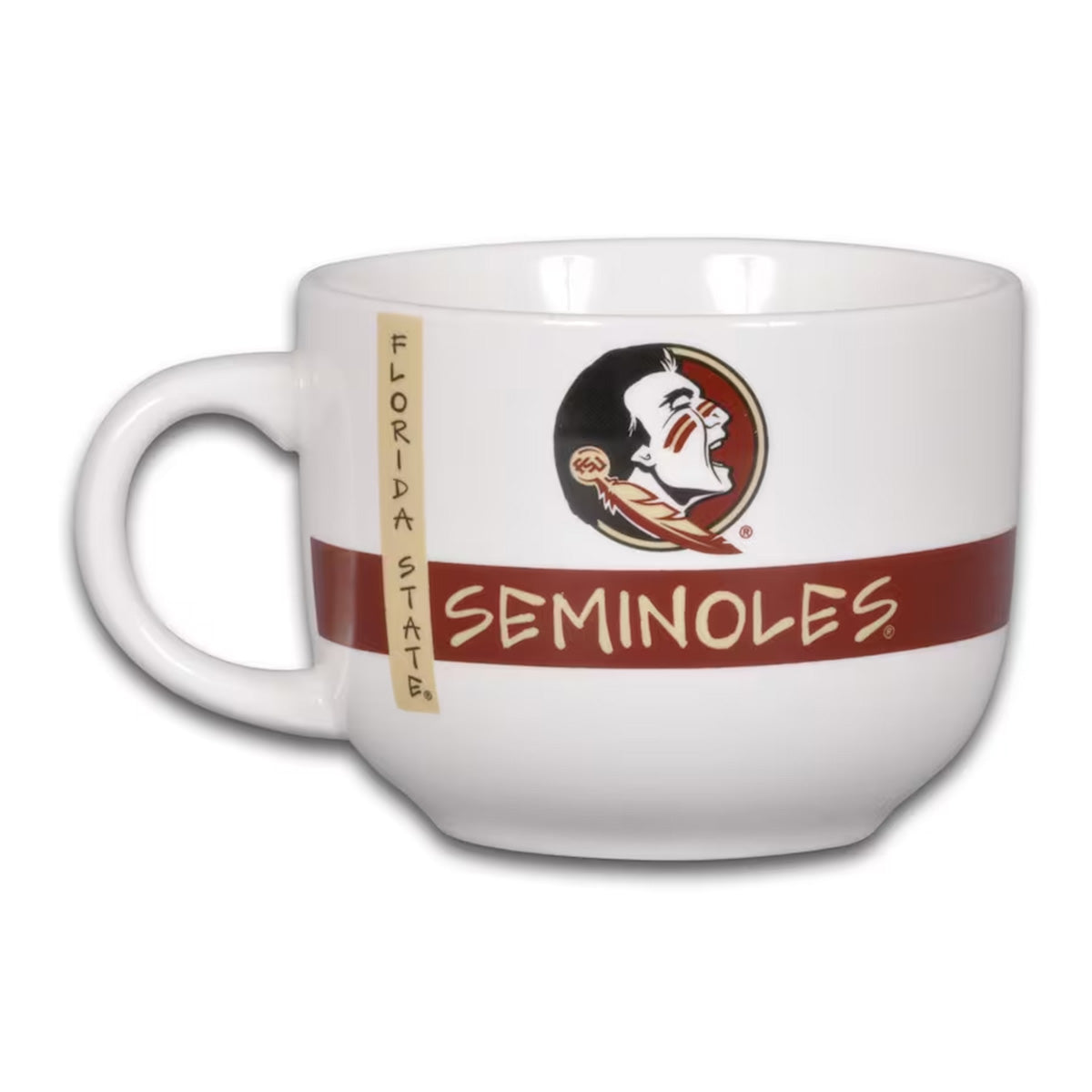 Material | 100% Ceramic. Color | White. Soup mug with Florida State Unconquered Spear design.