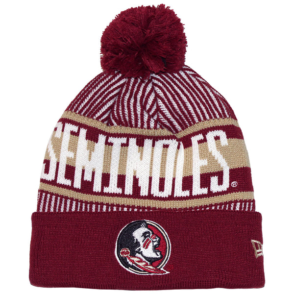 New Era Seminole Logo/Seminoles Pom Knit Cap - Garnet/Gold - Garnet is backordered and will ship as soon as it is back in stock.