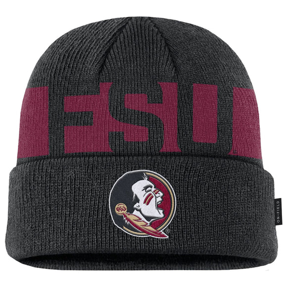 Nike Men's FSU Seminole Logo Utility Gameday Cuffed Knit Beanie - Black