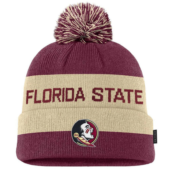 Nike Florida State Seminole Logo Cuff Pom Knit Cap - Garnet/Gold