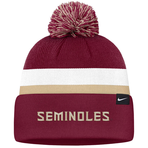 Nike Florida State Seminole Logo Peak Gameday Cuffed Pom Beanie - Garnet/Gold