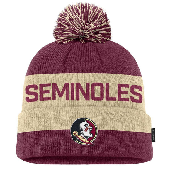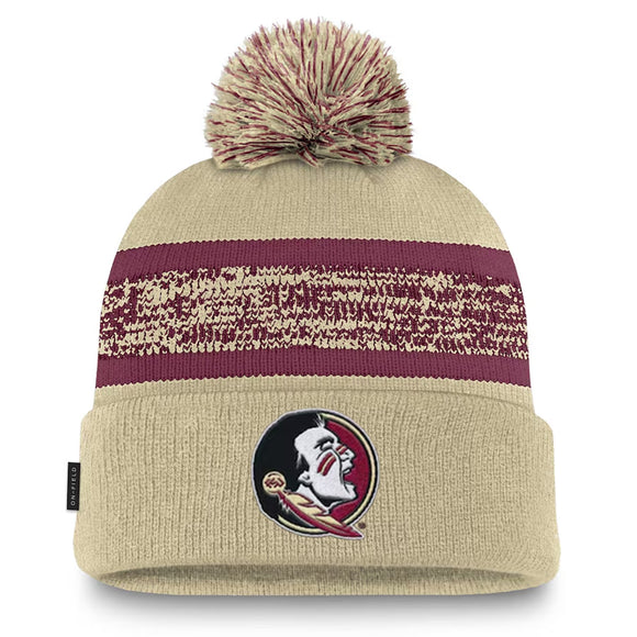 Nike Seminole Logo Cuff Pom Knit Cap - Gold/Garnet