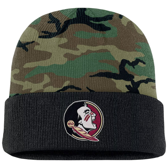 Nike Men's Seminole Logo Cuff Knit Military Beanie - Camo/Black