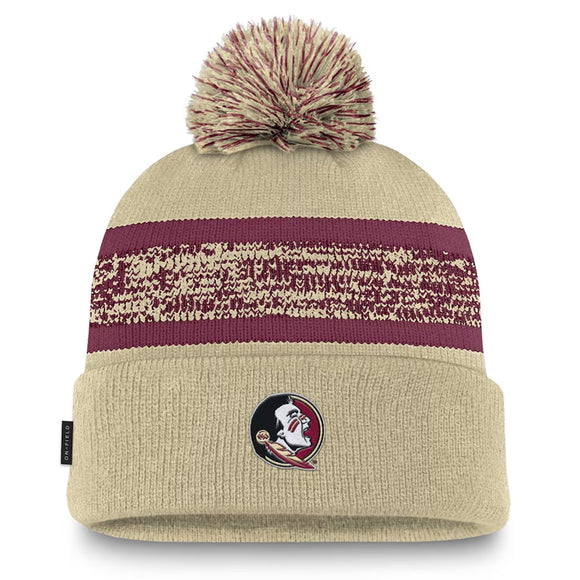 New Era Seminole Logo/Seminoles Pom Knit Cap - Garnet/Gold