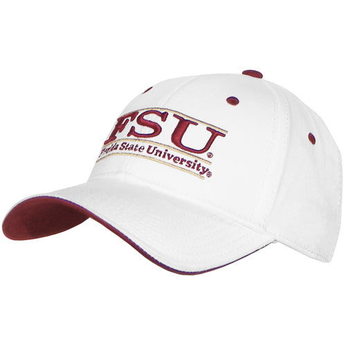 Adjustable cap with FSU/Florida State University Bar design