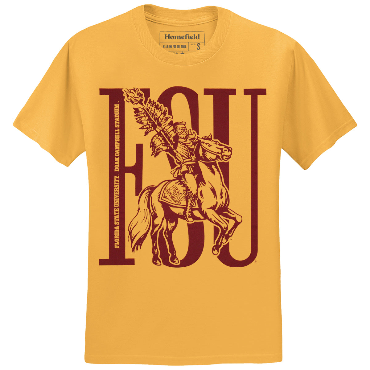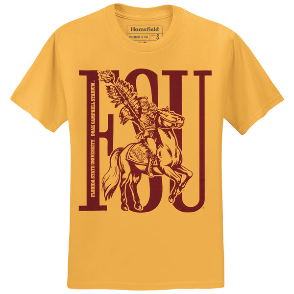Homefield Men's Vault FSU Osceola/Renegade Design Short Sleeve T-shirt - Gold - Gold / SM is backordered and will ship as soon as it is back in stock.