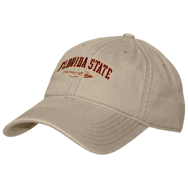 Material | 100% Cotton. Color | Khaki. Adjustable twill cap with embroidered Florida State Spear.