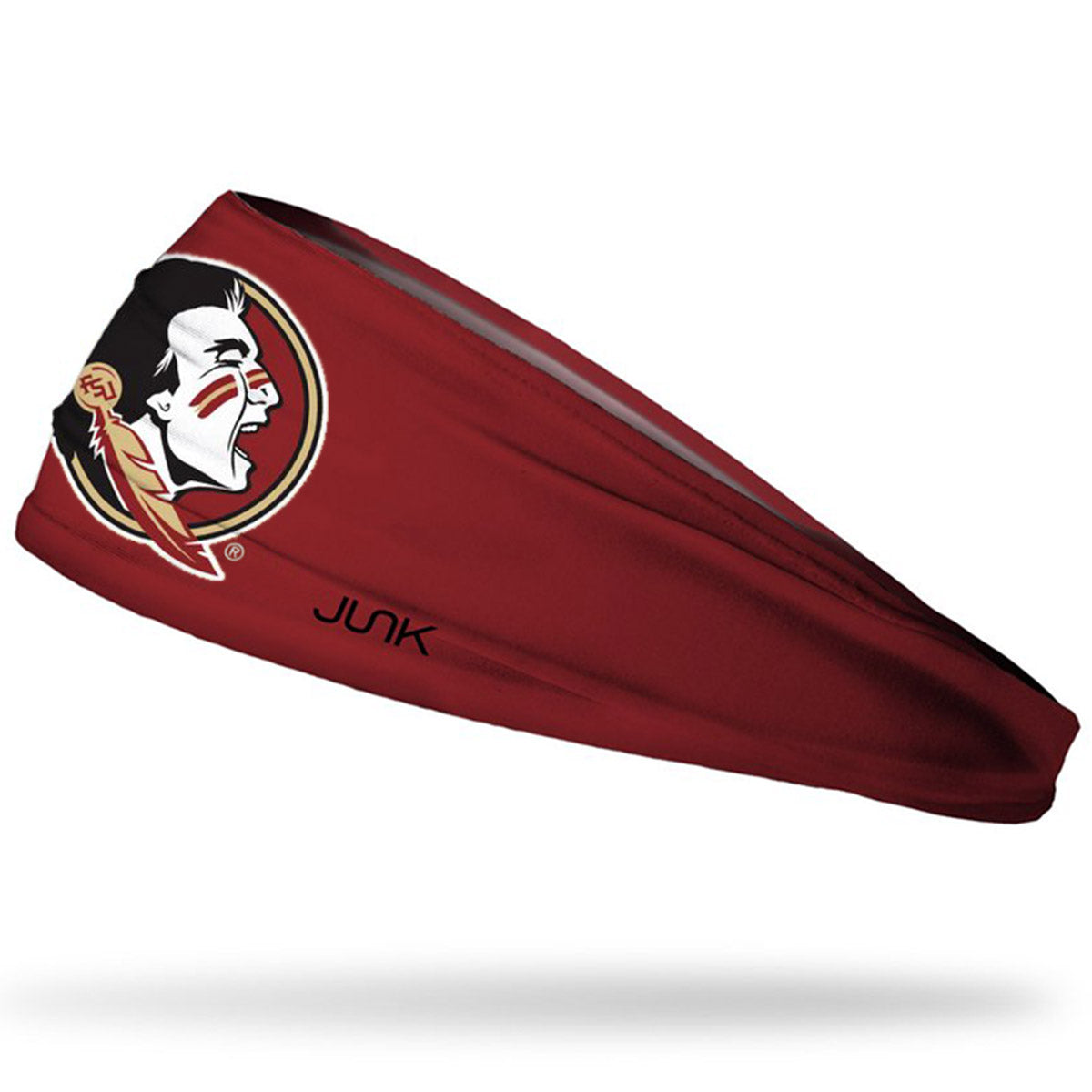 Material | 89% Polyester, 11% Spandex. Color | Garnet. Seminole Head headband. JUNK’s Technical T-Shirt fabric is a breakthrough technology specifically designed to keep you cool while emulating a super comfortable t-shirt feel. This is the best athletic headband you'll ever wear! One size fits most. White on the inside. Machine washable. Lightweight, single ply. Breathable, soft & cool against the skin. Wicking to help pull sweat away from the skin & quickly dry.