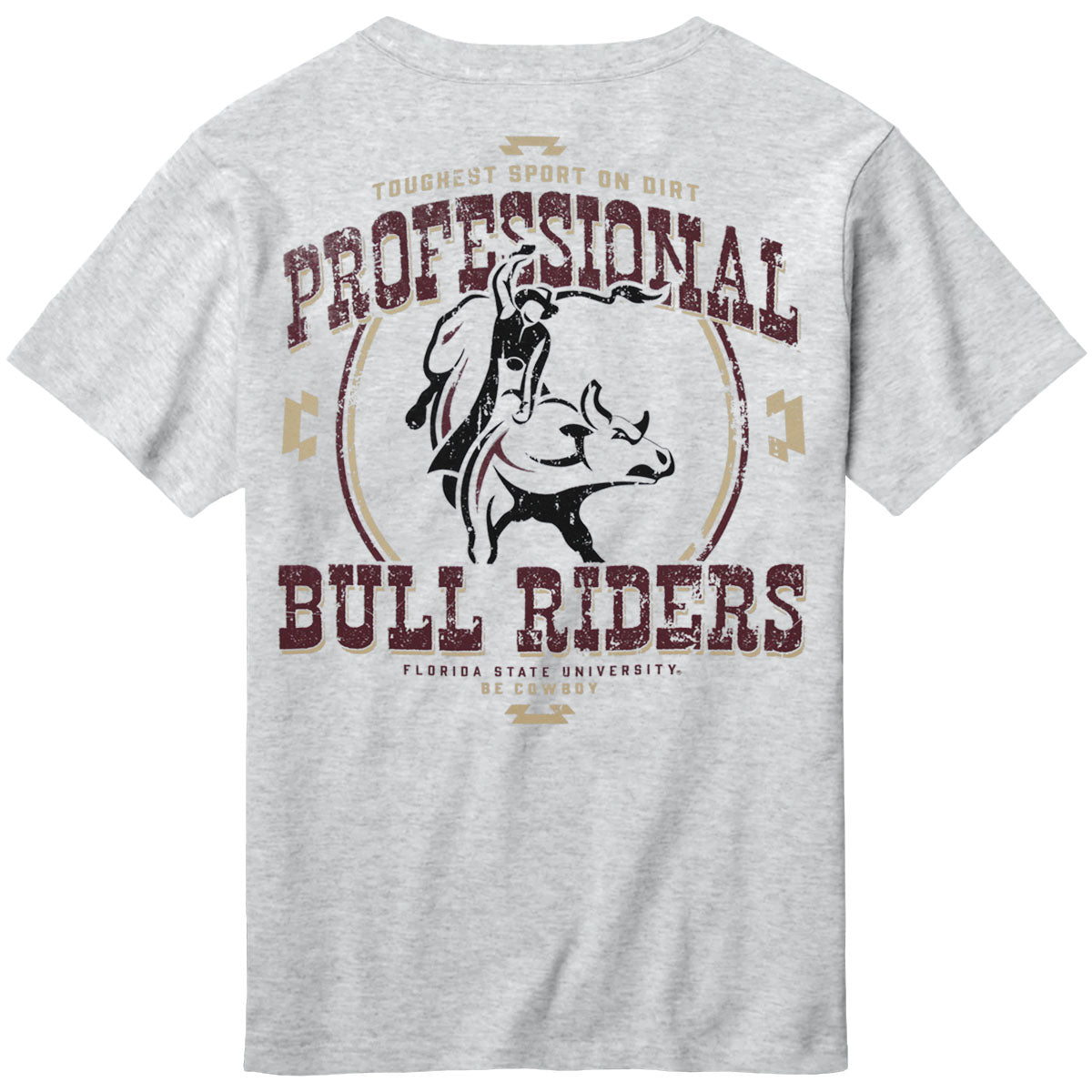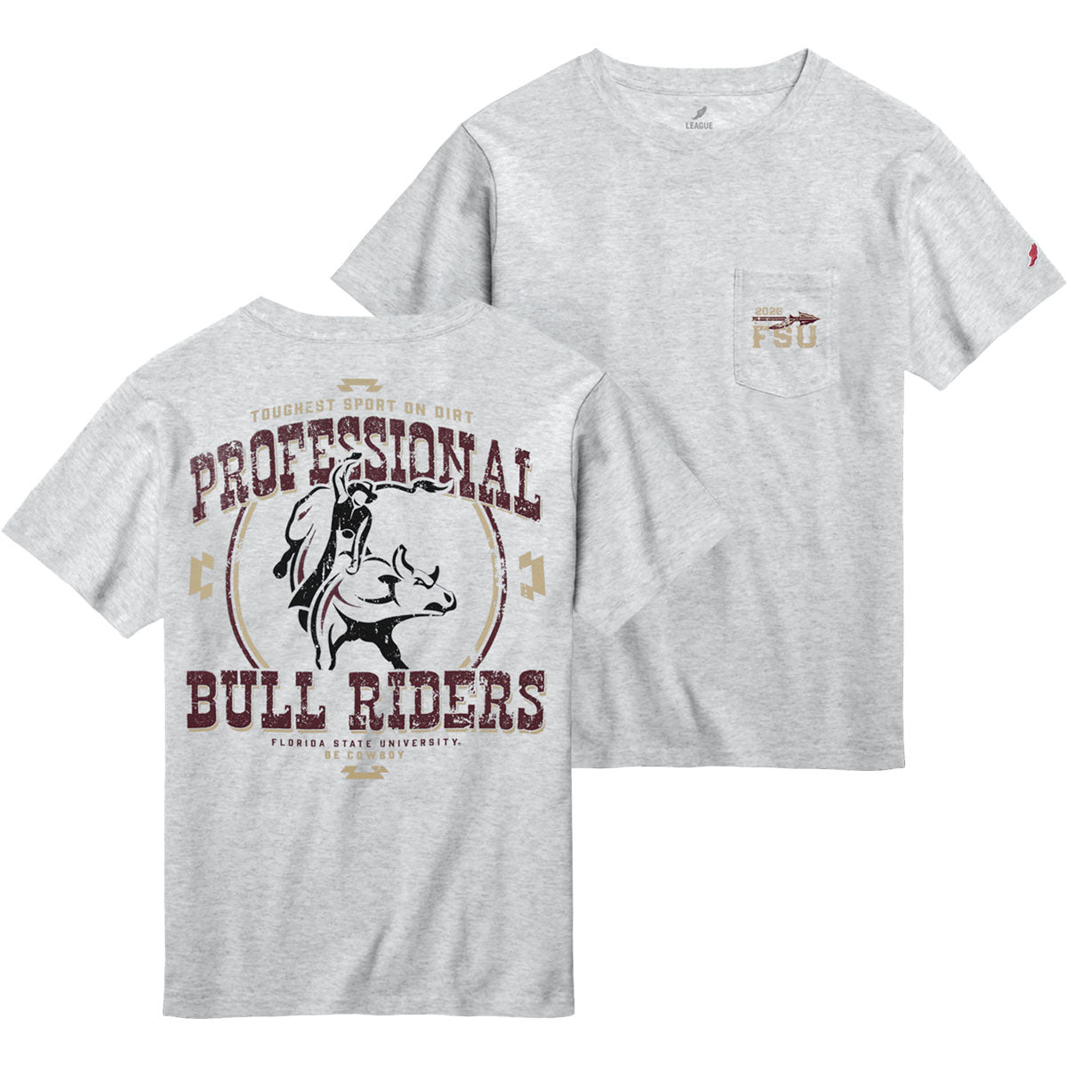 League Men's Florida State Professional Bull Riders Design Short Sleeve Pocket T-shirt - Ash - ASH / SM is backordered and will ship as soon as it is back in stock.