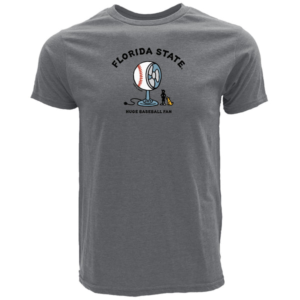 Material | Cotton/Polyester. Color | Heather Grey. Men's short sleeve t-shirt with screen printed Florida State Huge Baseball fan Life is Good design.