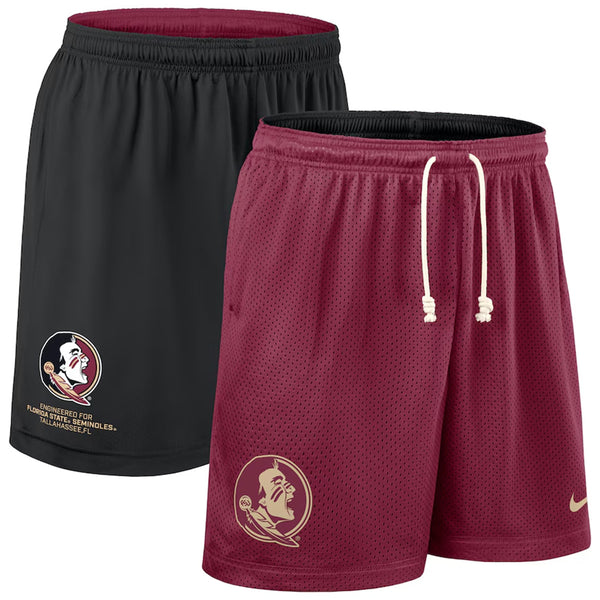 Material | 100% Polyester. Color | Garnet/Black. Nike men's dri-fit reversible mesh short with Seminole Head. Drawstring. Pockets.