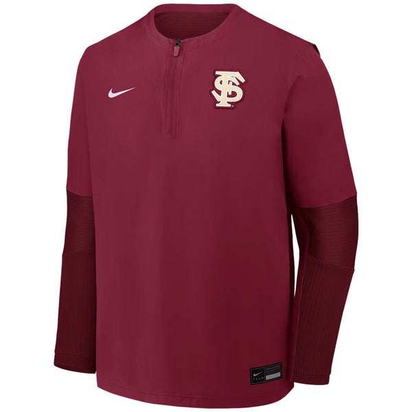 Material | 93% Nylon, 7% Elastane. Color | Garnet. Nike men's long sleeve 1/4 zip windshirt with embroidered rubberized Interlock FS patch.