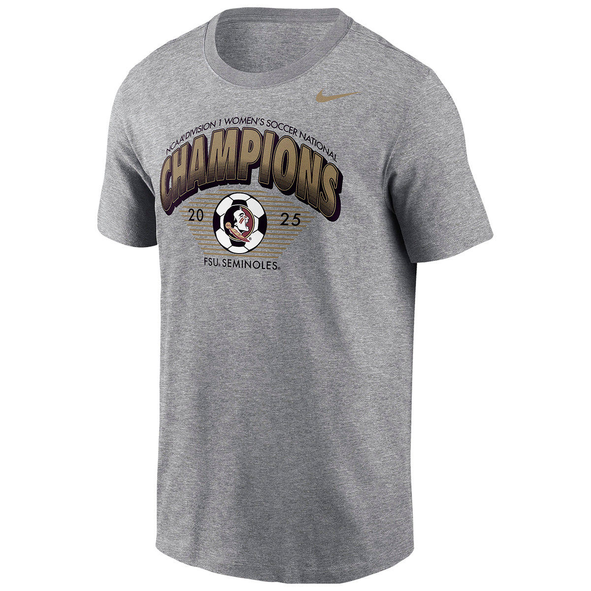 Material | 100% Cotton. Color | Gray. Unisex-cut short sleeve t-shirt features screen printed 2025 Women's Soccer National Champions Design at center front.