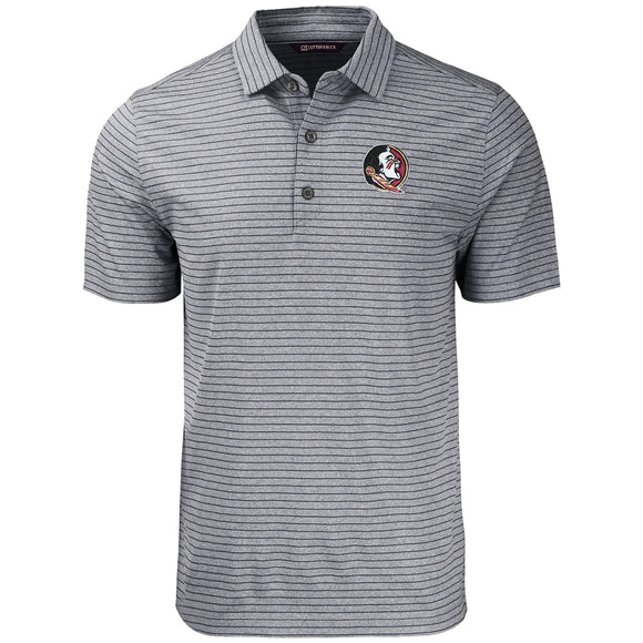 Cutter & Buck Men's Seminole Logo Forge Eco Heathered Striped Stretch Polo - Grey