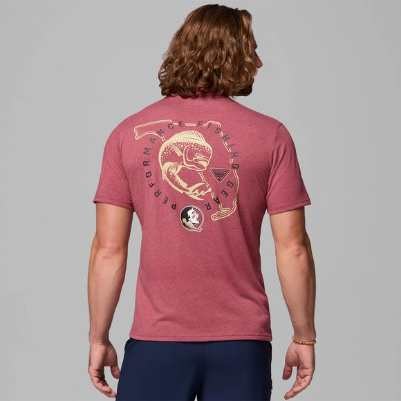 Columbia Men's FSU Spear/Seminole Logo Fish Design PFG Short Sleeve T-shirt - Heathered Garnet