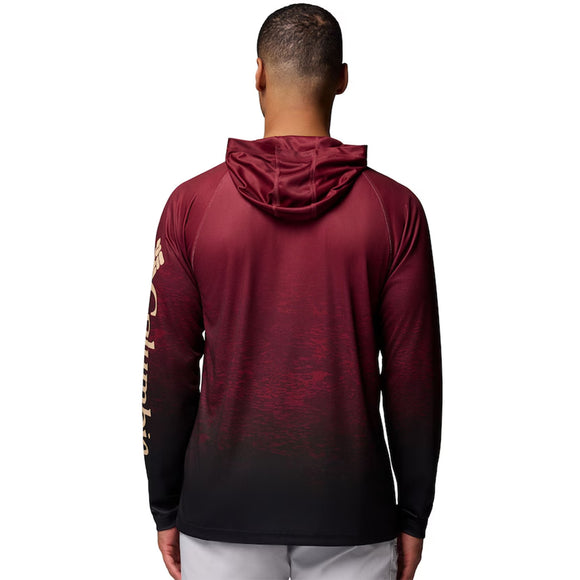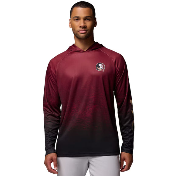 Columbia Men's Seminole Logo Super Terminal Tackle Long Sleeve Hooded Shirt - Garnet/Black