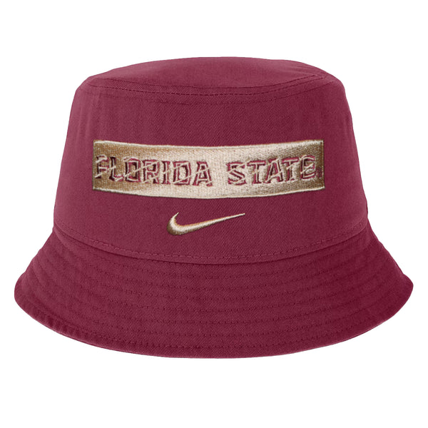 Material | 100% Cotton. Color | Garnet. Nike Apex Bucket hat with embroidered rubberized Seminole Head patch. Embroidered Florida State.