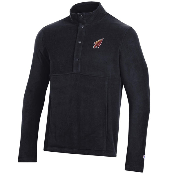 Material | 100% Polyester. Color | Black. Champion men's Explorer pocketed polar fleece jacket with embroidered Arrowhead. Pockets.