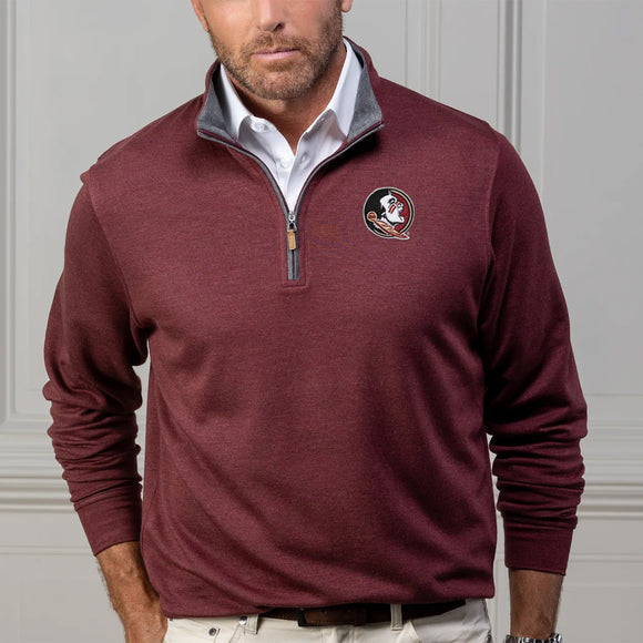 Collars and Co. Men's Seminole Logo Heathered 1/4 Zip Pullover - Merlot