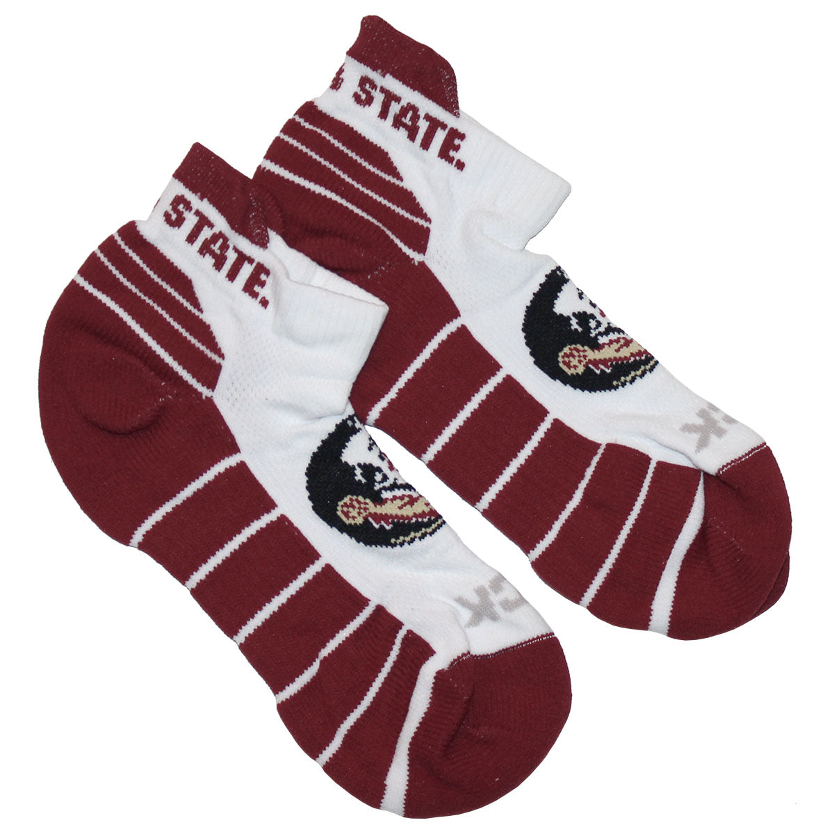 Material | 51% Polyester, 45% Nylon, 2% Spandex, 2% Rubber. Color | White/Garnet. Low-cut sock with Seminole Head/Florida State.