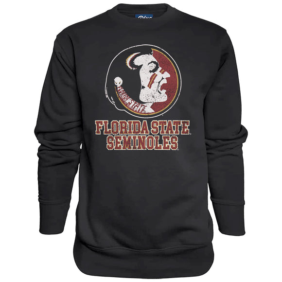 Blue 84 Adult/Unisex Vault Seminole Logo/Florida State Seminoles Design Vintage Crew Fleece - Black