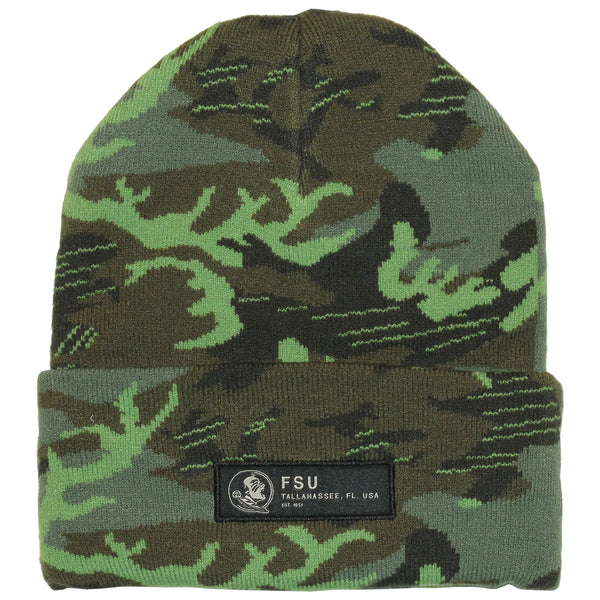 Material | 100% Acrylic. Color | Green Camo. Nike military beanie with Seminole Head FSU woven label.