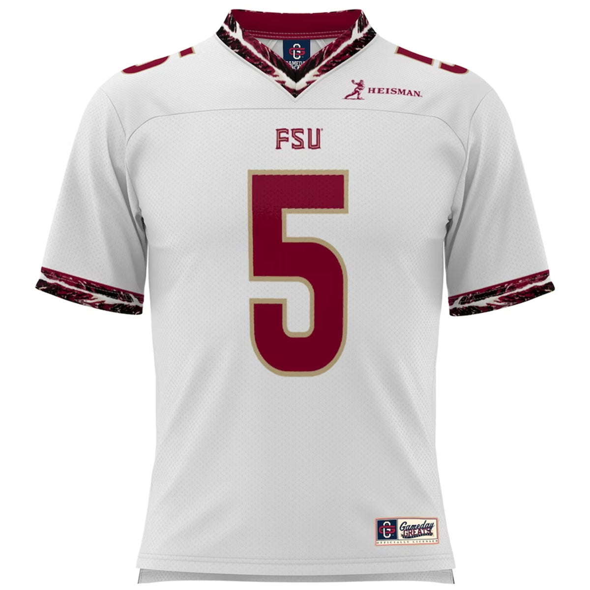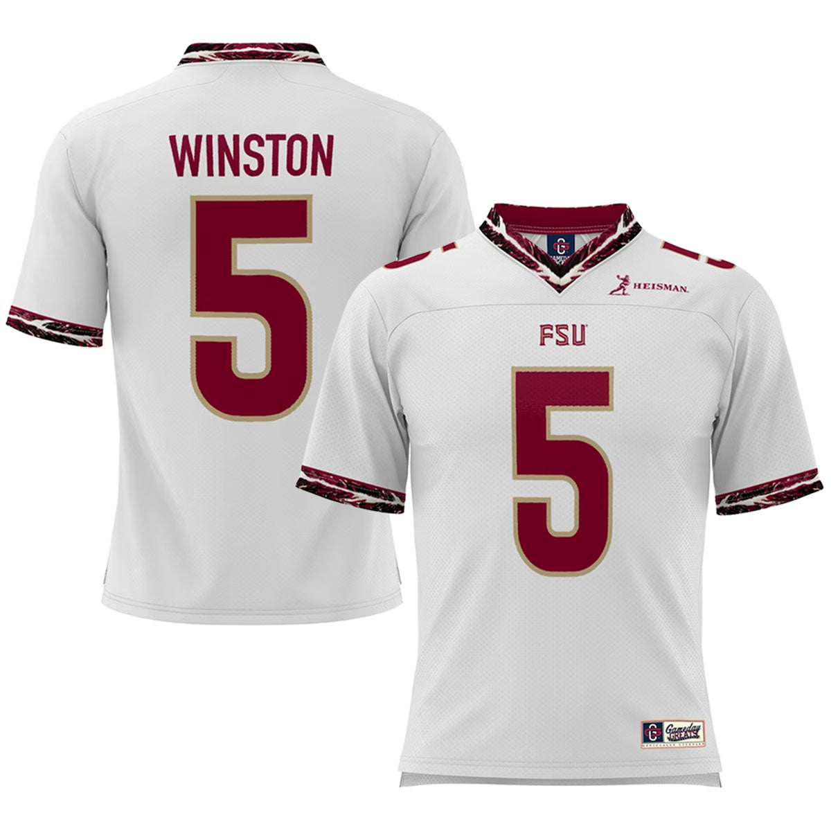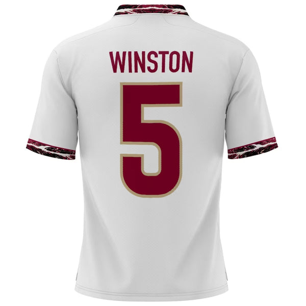 Material | 92% Polyester, 8% Spandex. Color | White. Jameis Winston throwback #5 football jersey.
