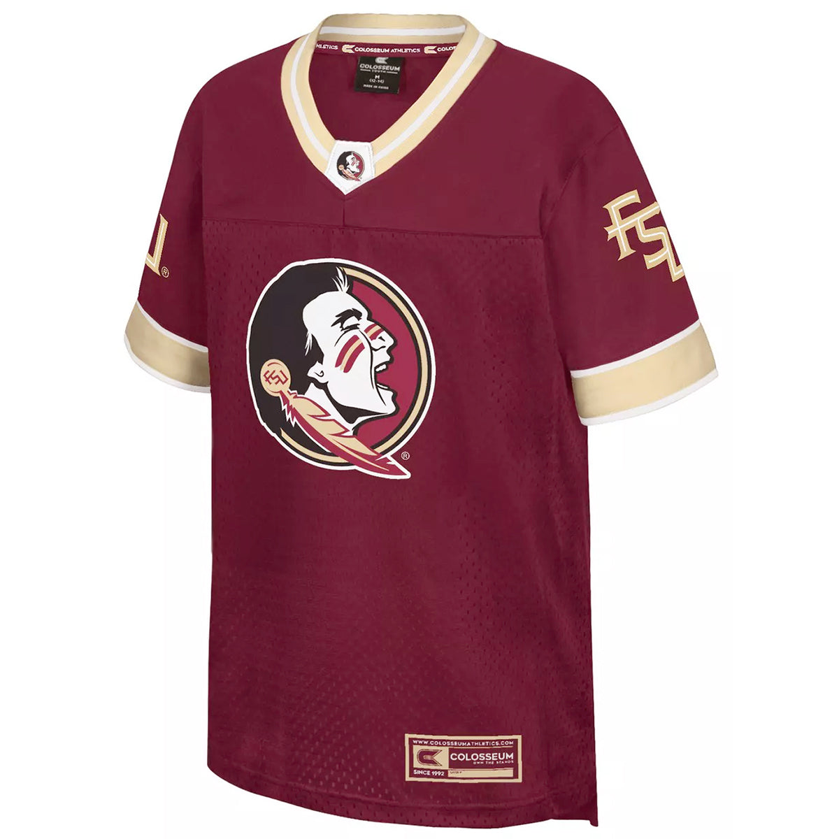 Colosseum Youth Seminole Logo Football Jersey - Garnet/Gold - Garnet/Gold/White / YXS is backordered and will ship as soon as it is back in stock.