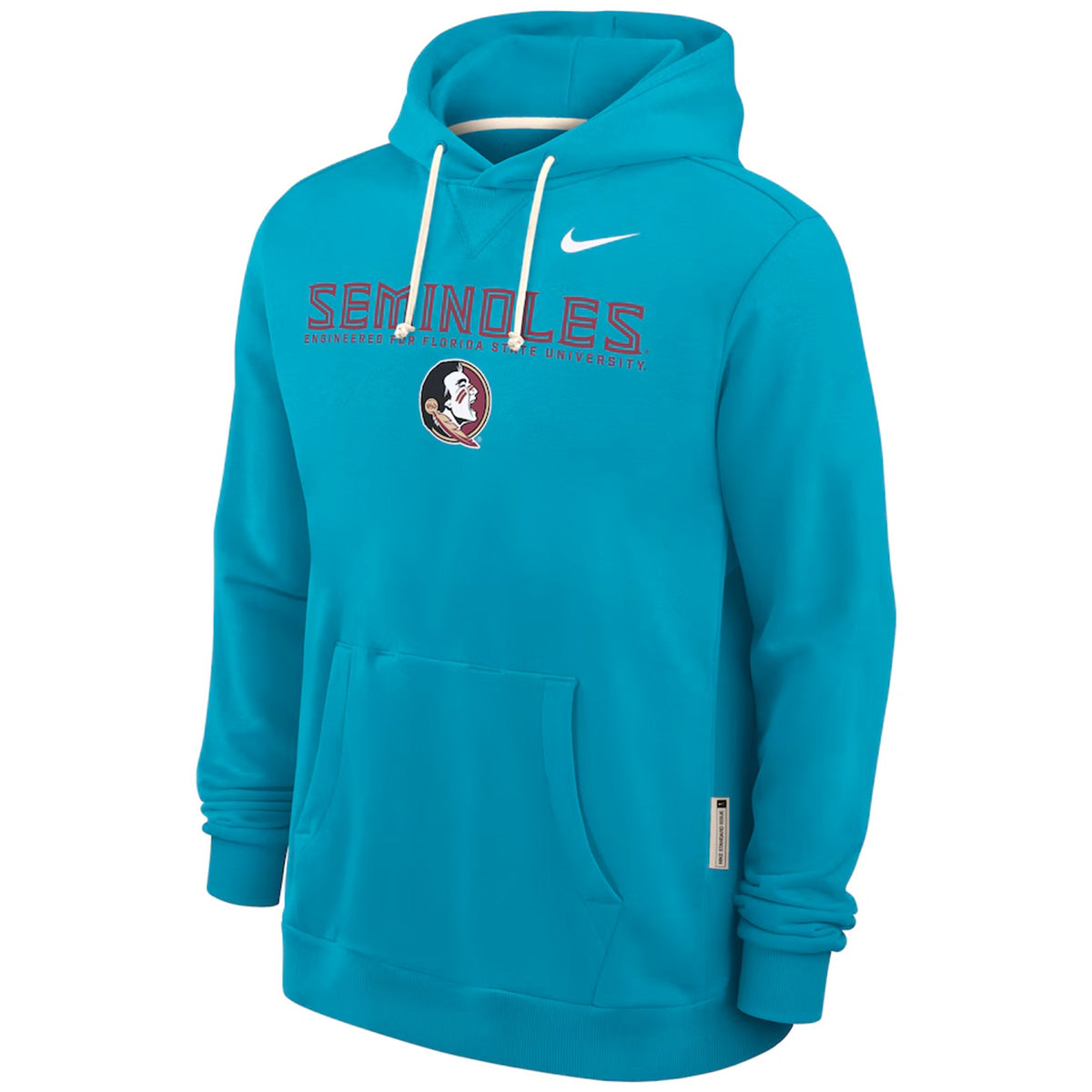 Material | 53% Polyester, 47% Cotton. Color | Turquoise. Nike men's dri-fit hooded pullover with Seminoles/Seminole Head.