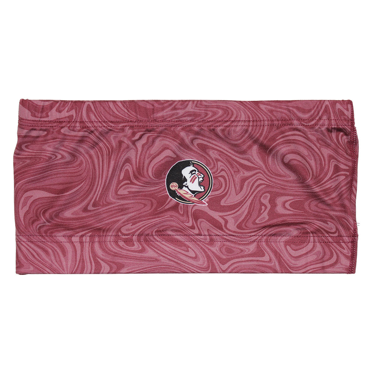 Material | 87% Polyester, 13% Spandex. Color | Garnet. Women's bandeau with sublimated swirl Seminole Head design.