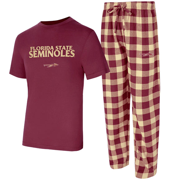 Concept Sports Men's Florida State Seminoles Spear Design Flannel Pant and Short Sleeve T-shirt Sleep Set - Garnet/Gold