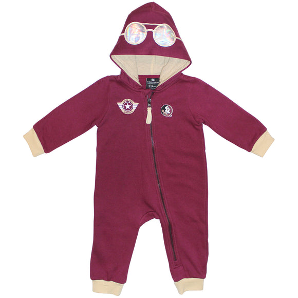 Colosseum Infant Seminole Logo Top Gun Hooded Zipper Romper - Garnet