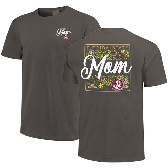 Image One Comfort Colors Women's Florida State Mom Floral Design Short Sleeve T-shirt - Pepper