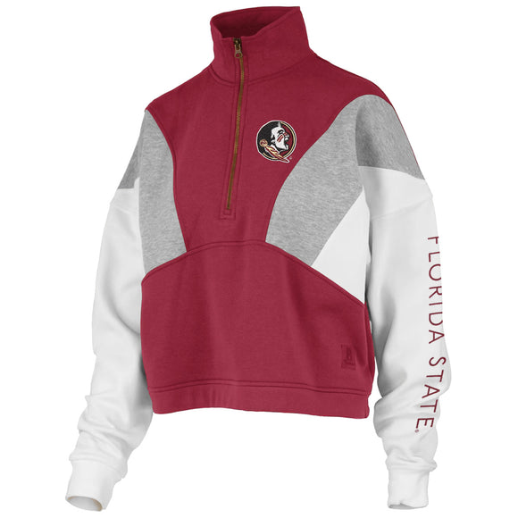 Pressbox Women's Seminole Logo 1/4 Zip Fleece - Garnet/Grey/White
