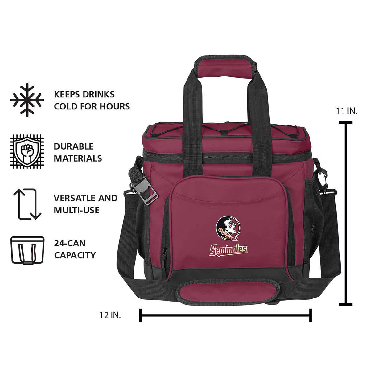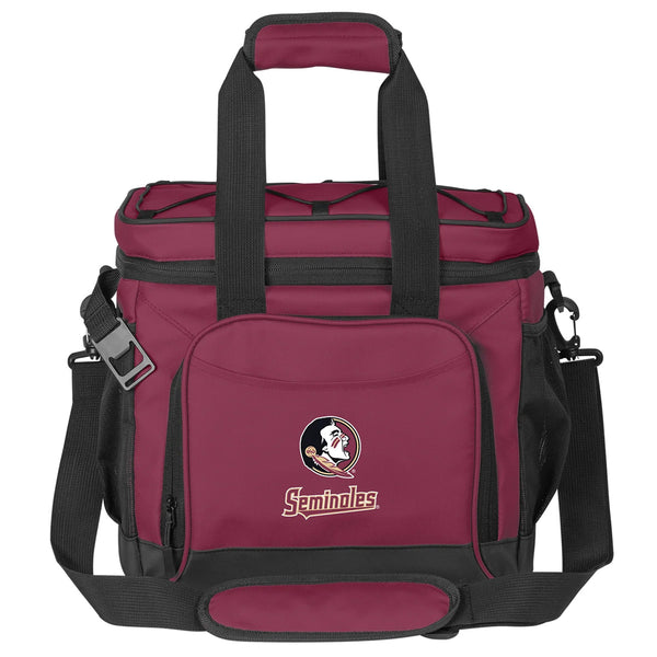 24 Can flex cooler with screen printed Seminole Head Seminoles. Additional bungee cord top. Detachable shoulder strap. Built-in bottle opener. Heat-sealed leak-proof interior lining.